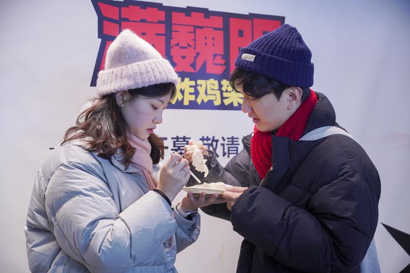 12月25日,韩国旅客在上海豫园商城品味好意思食。