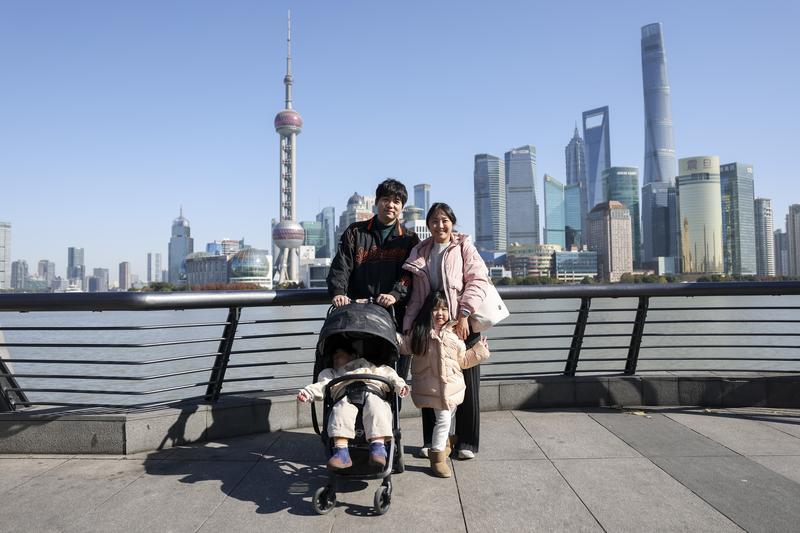 2024年12月28日,韩国旅客文鉉堣(左后)一家在上外洋滩合影。他们在圣诞节来到上海并筹画游玩5天。近期,好多韩国旅客“扎堆”来到上海旅行,韩国也流行起了“周五放工去中国”。本文图片开头:新华社
